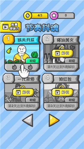 节奏抖魂是一款拥有超多音乐节奏的休闲益智类手游,这款有各种新元素的游戏,玩家会操控着不同的男神角色来开启紧张刺激的PK,这里有4个帅气的角色,玩家可以自由的操控,也可以在游戏中开启娱乐模式。