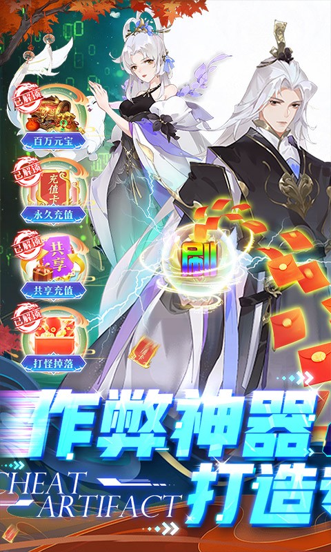 【作弊修仙】:上线即送作弊神器,投资返利、免费直充、免费神充等等系统皆数解除,资源无限,奖励无限,从此修仙不再平凡