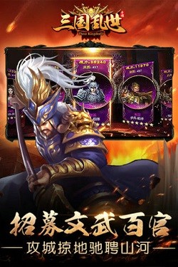 玩家能够养成不同的武将进行战斗,不同的武将将会有不同的属性,海量的福利能够在游戏中领取,玩家还能够在副本中获取众多的宝物,多样的玩法以及挑战,在游戏中开疆扩土统一天下。