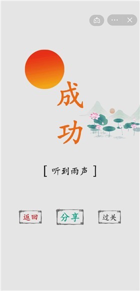 这个关卡的目标是听雨声。关卡底部有莲花二字,意思是所有的雨水都落在莲花上,所以听不到雨声。只要点一下莲花二字,它们就会落下来,自然就能听到雨声。