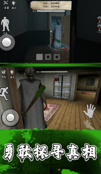 逃亡冒险挑战,恐怖奶奶三章等你来解读!危机冒险等你完成,恐怖奶在不断对你进行追杀,在恐慌冒险中展开收集解谜。完成全部任务逃生挑战,完成逃生冒险任务,恐怖奶奶三章等你来挑战!