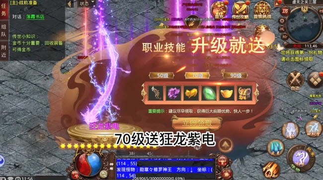 2.狂龙紫功,炫酷技能,大量的武器图鉴等你解锁,单伤和群伤都能释放,所有过程都很棒。