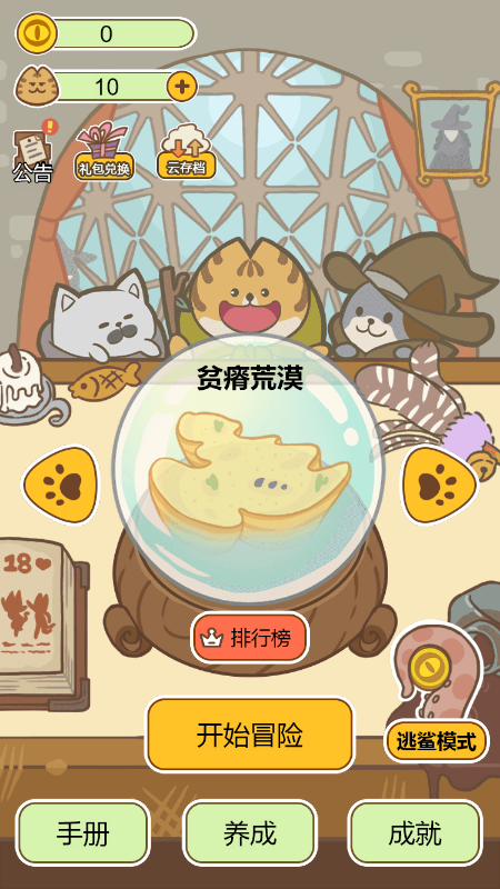 2.和喵桑一起冒险,在这里能够自由的冒险战斗,解锁更多的关卡和挑战模式