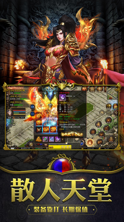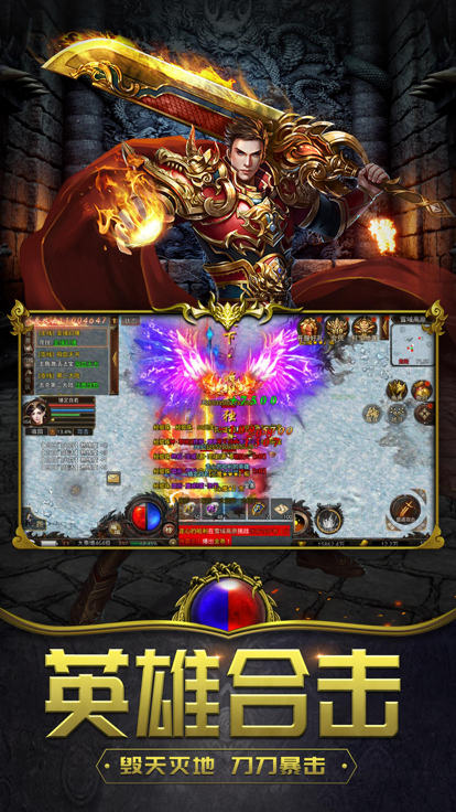 2.强大英雄合击技,刀刀切割,刀刀爆装,神装遍地掉,一键回收笑傲玛法大陆。