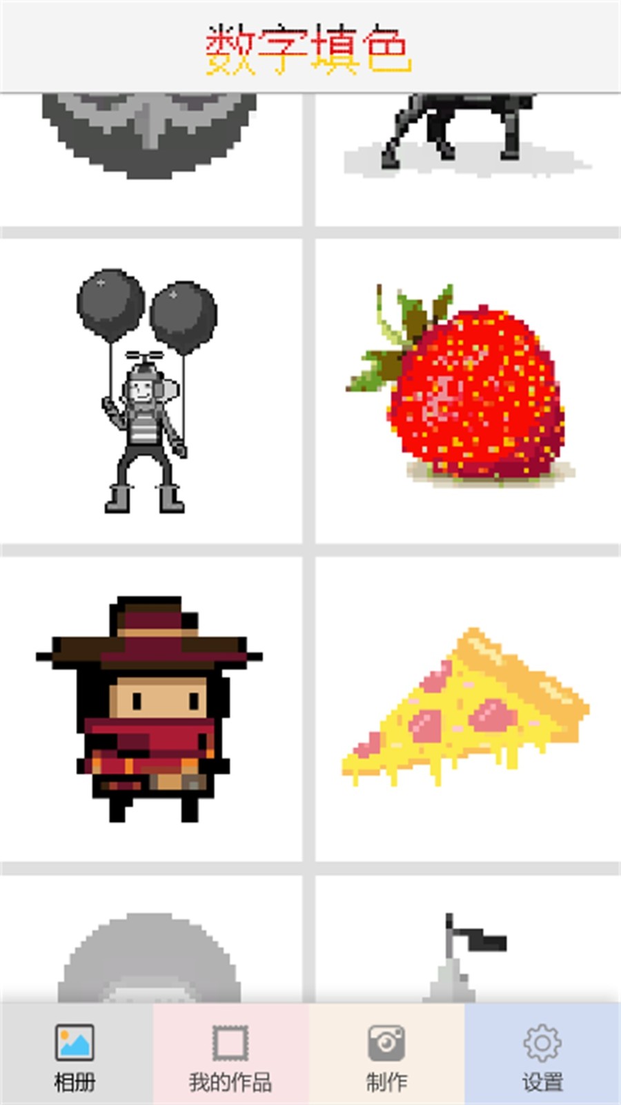 2.有很多的像素画可以选择,你填上颜色,成为风格独树一帜的画作。