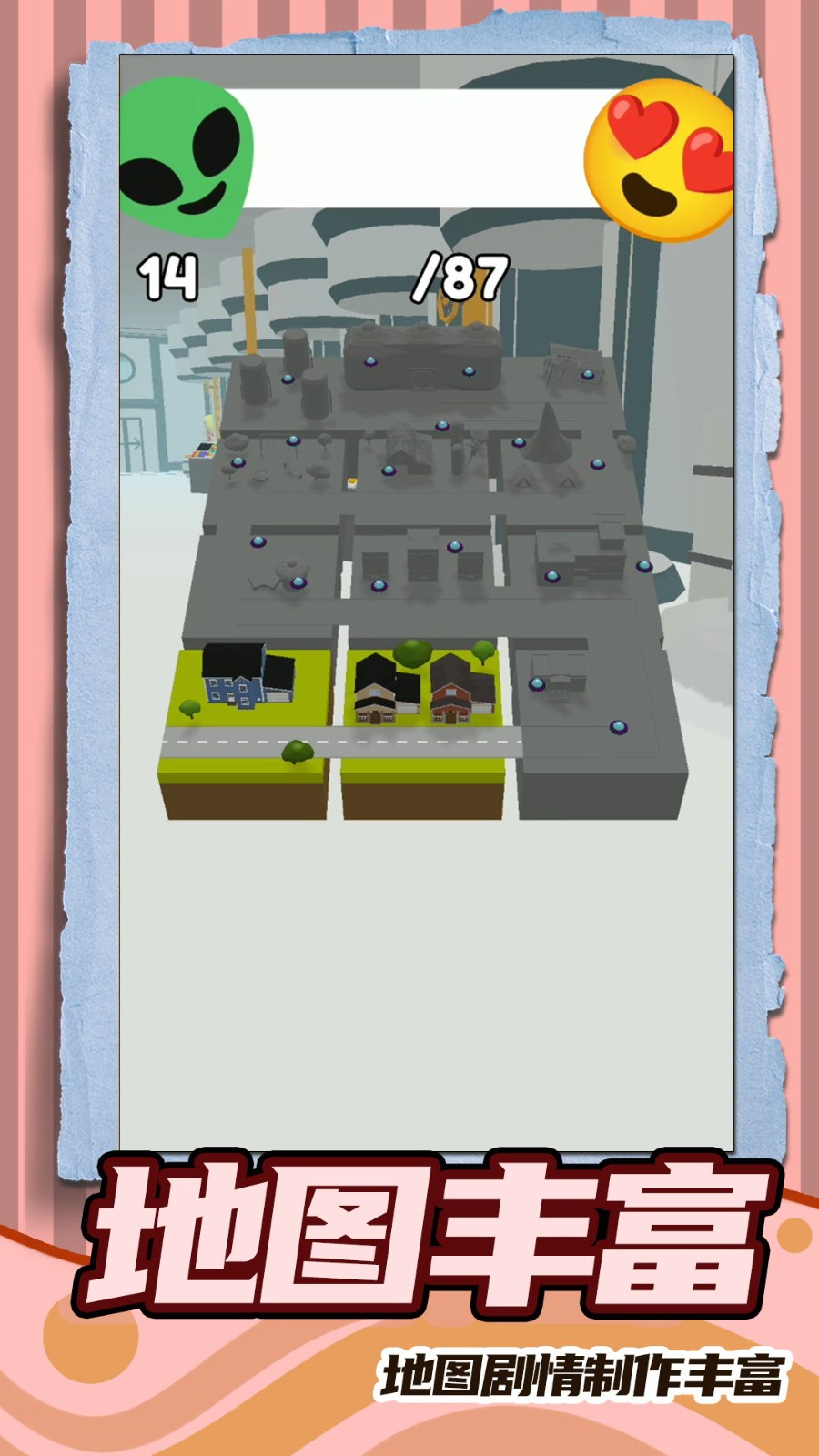 1.找出藏在身边的外星人,并且将它们击败,不然他们会对城市产生威胁。