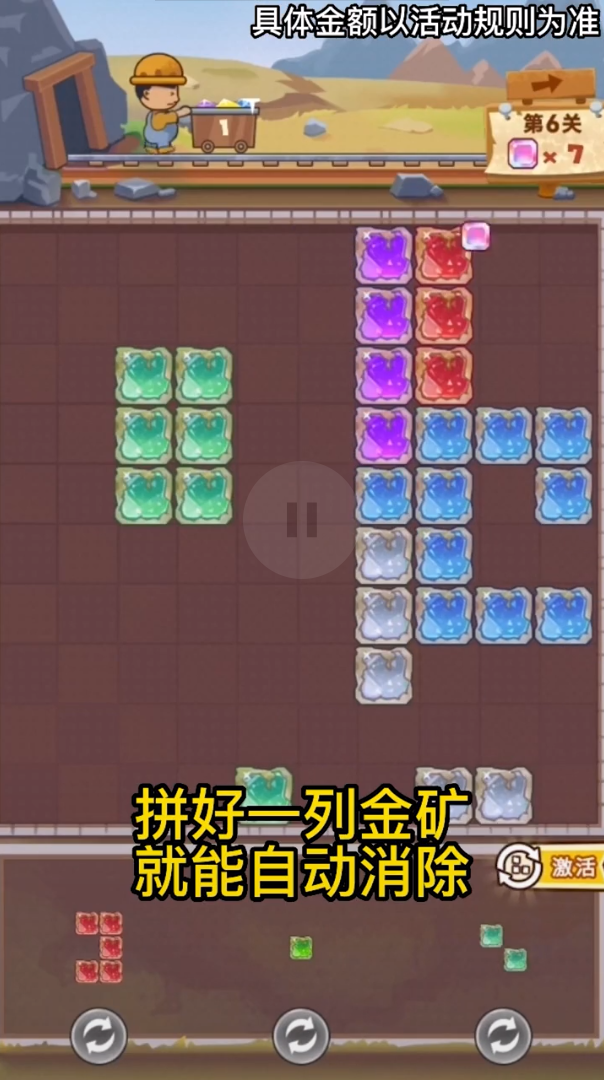 3.色彩鲜艳的矿石在地下等你挖掘,被消除的时候有非常绚丽的特效,还有相应的音乐,沉浸式领红包。
