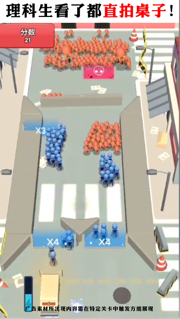1、用自己的火柴人军团吞噬对手,不断的增加数量压制敌人,简单的放置所有的角色,不断的向前冲刺吧。