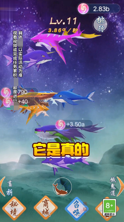 进化快乐大土豪,合成等你赚红包!精彩合成山海冒险历练等你加入进行冒险,将不断出现的鱼类进行吞食,完成合成得到对应的奖励,合成丰富类型玩法模式便捷有趣,轻松进化赚红包,成为快乐大土豪!