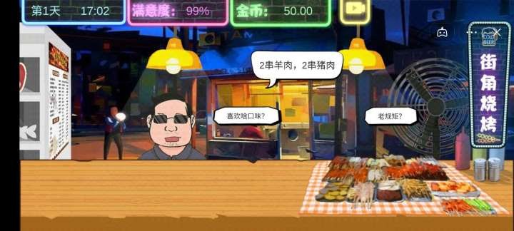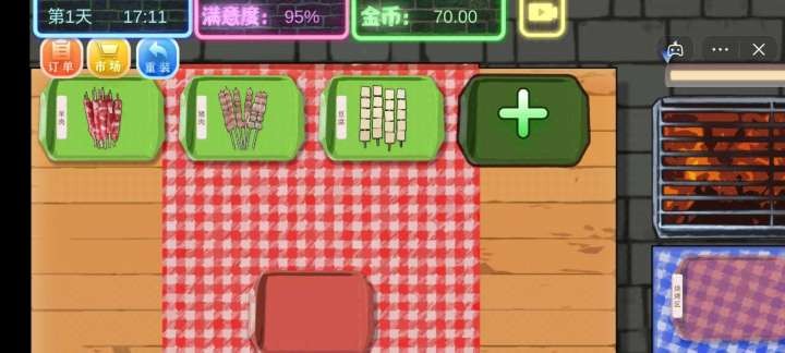 2.会随时发生各种不同的情况,需要玩家制作各种烧烤满足顾客的需求