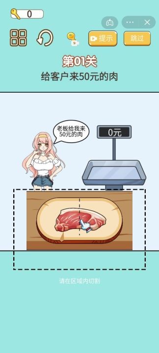 称量达人是一款抖音上非常火的切割称量休闲游戏,根据客人的需求要切割分量精准的商品,为所有顾客提供最到位的服务,称量达人游戏非常多新的创意和有趣的元素,能为玩家带来全新的操作体验,所有的关卡都非常的简单,但是对大家的头脑思维能力又有一定的考验,玩家在闯关的时候一定要充分发挥自己的头脑风暴,进行灵活的切割,才能获得最后的胜利