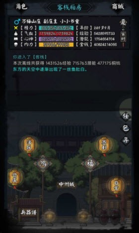 游戏背景以武侠世界为背景,其中操作简单,你可以通过点击滑动来决定玩家的一生,你会到达不同的结局,让你在新的花宝里玩的越来越精彩。