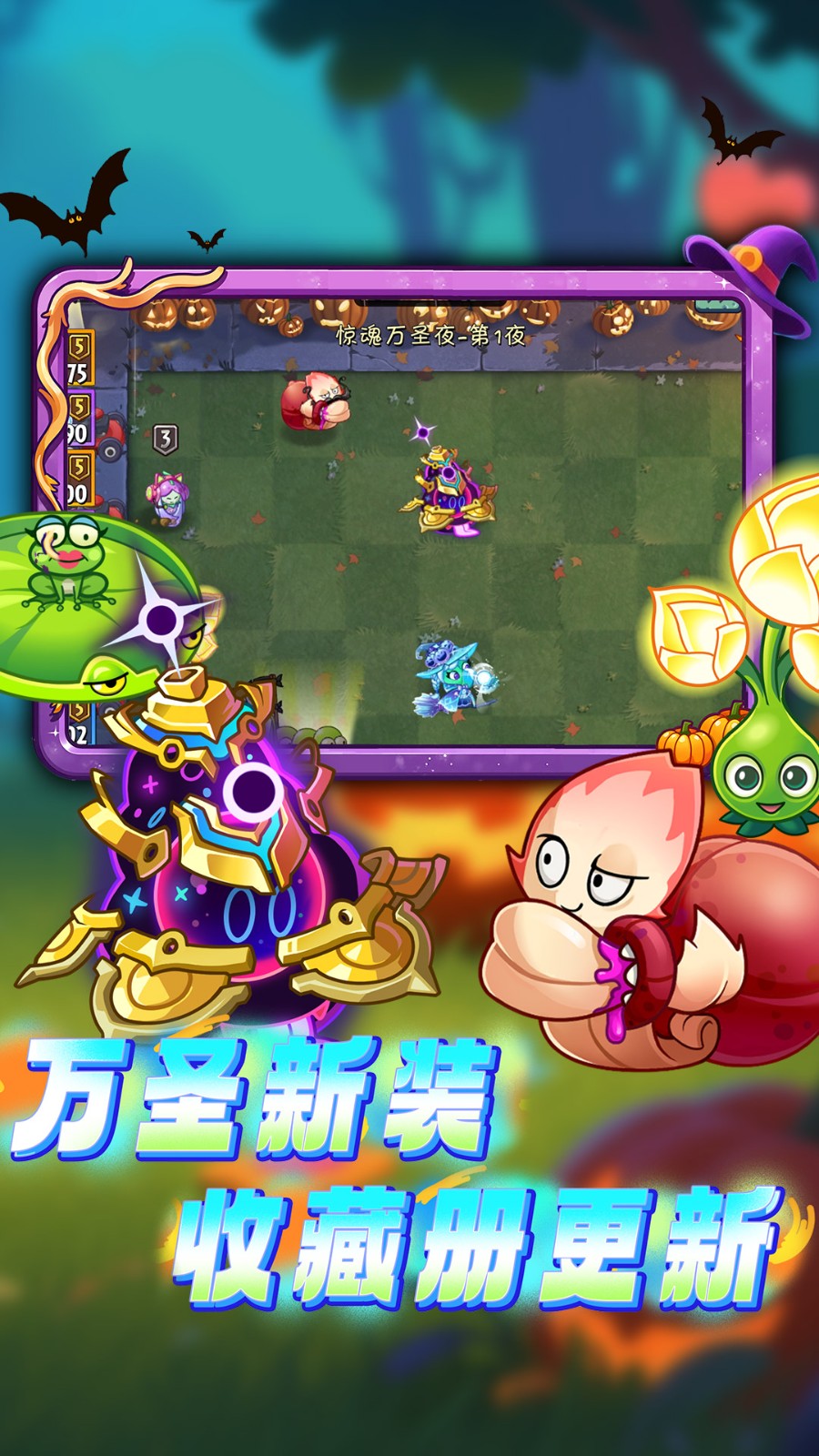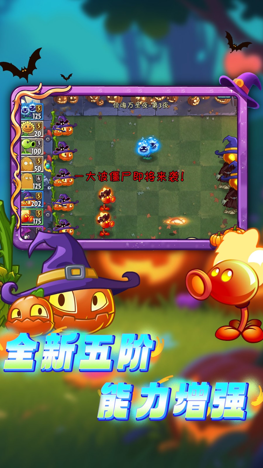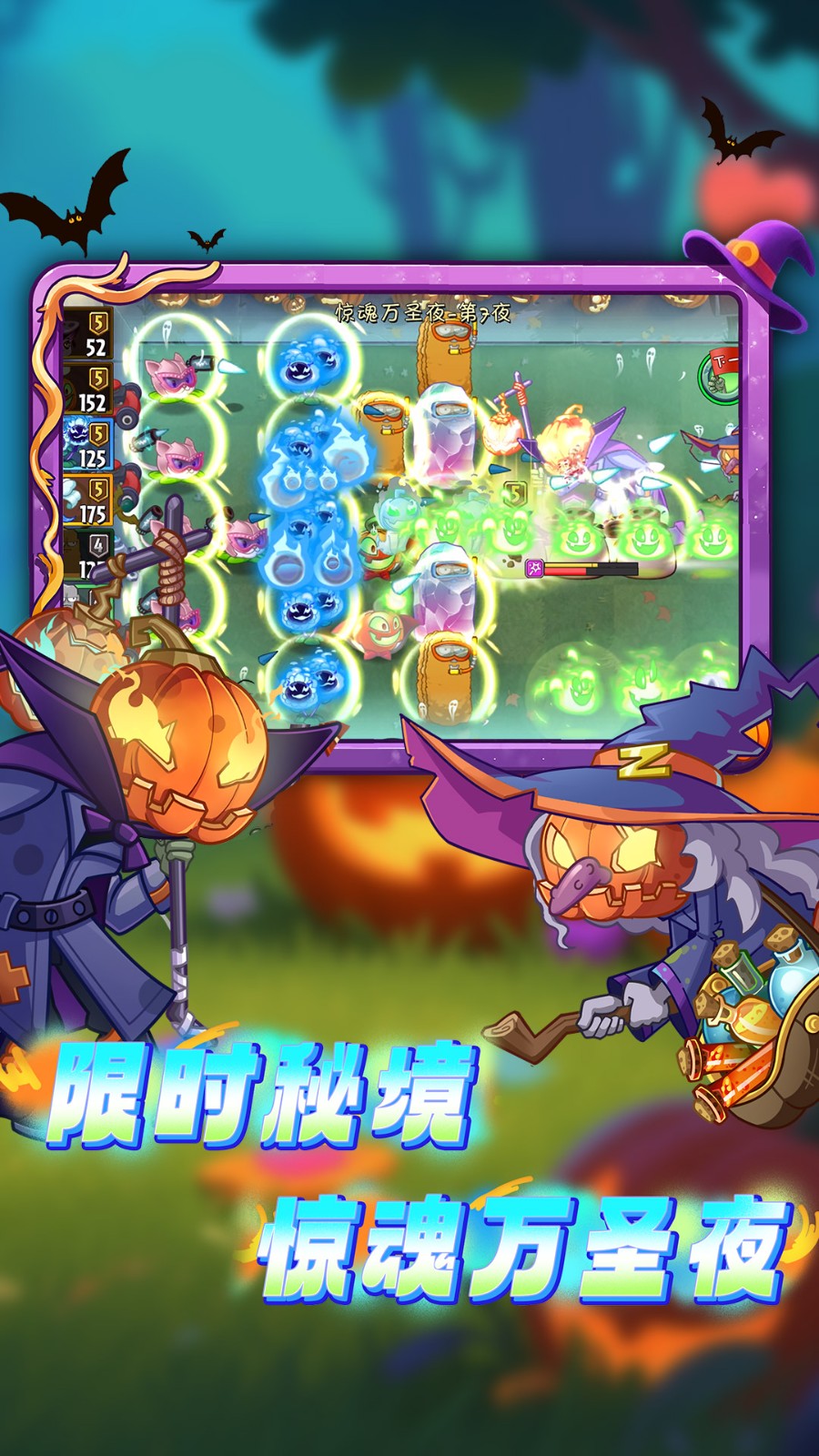 - 万圣前夜,植物和僵尸们的“不给糖就捣乱”大战即将拉开帷幕。新地图、新关卡,满满的万圣节氛围席卷而来,一大波万圣节主题僵尸即将来袭,保护好你的脑子……还有糖果;