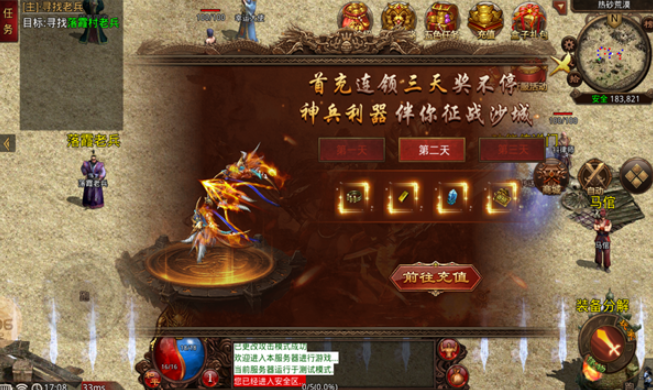 1.海量福利高爆掉落,丰富类型好礼等你来拿,等级飙升卡快速升级打造沙巴克最强传说!