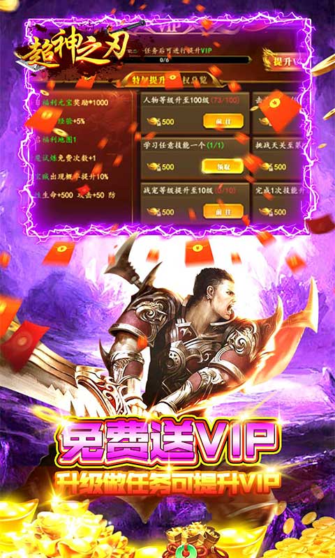 超神之刃刀刀切割是一款热血奋斗的传奇角色扮演的游戏,这里面每种热血场景都会给玩家留下很深的印象,画面精美,技能炫酷,爆率高,刀刀暴击,装备全靠打,VIP免费送,登录签到领豪华大礼,同时还能欣赏到很多具有特色的人物形象设计,他们每次使用武器装备的姿势都是非常炫酷的,刀刀全部都是致命的。