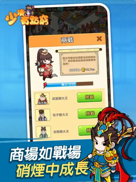 经营赚收益,少侠有点穷!创意古风经营题材结合三国剧情,丰富经营任务等你参与完成多种剧情,携手玩法给你带来全新冒险乐趣,召集各路侠士在这里感受更多不同的新玩法,少侠有点穷,经营不停歇!