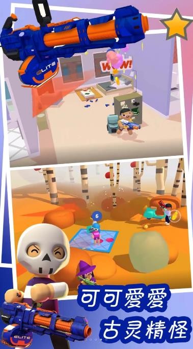 捣蛋鬼的恶作剧是一款魔性射击乱斗对战游戏,游戏画面看起来非常的卡通魔性,可以让玩家有一种身临其境的感觉,捣蛋鬼的恶作剧游戏炫酷的特效技能加上靓丽的游戏画面,欢快的背景音乐可以让玩家体验的时候充分放松,各种不同枪支可以使得玩家眼前一新