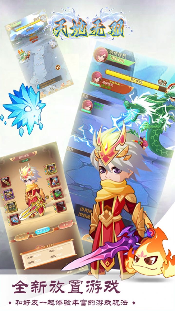 全新的放置游戏,和好友一起体验丰富的游戏玩法,轻松释放强大招式技能,路遇高手,狭路相逢,一决高下!在厮杀中提高自己的能力,挂机也能很好的得到很多资源,助力战斗,发挥实力。