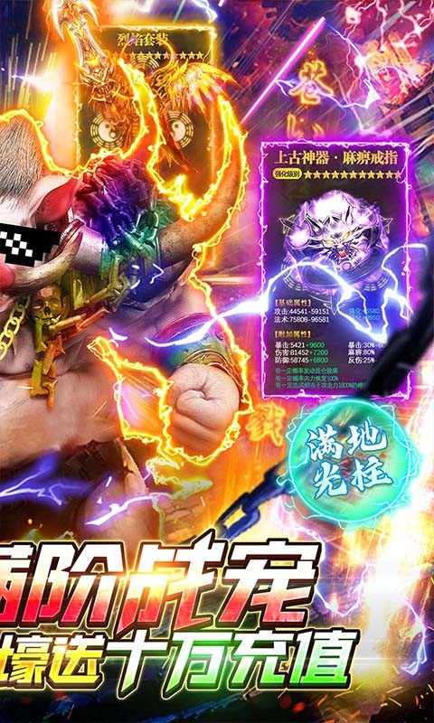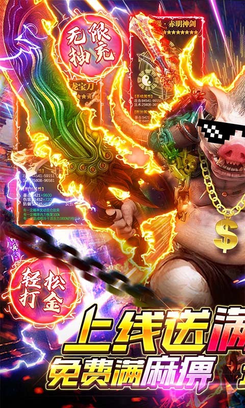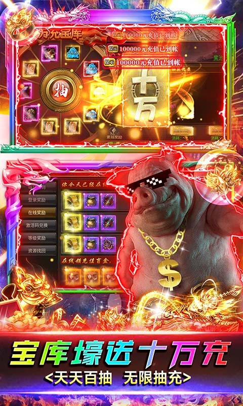 封神传奇满宠满麻十万充这款游戏给玩家带来了特别热血的传奇故事,上线即送GM1、60w钻石、1亿绑定元宝、1000元红包,GM甲、GM剑让你前期刀刀秒怪,还有战宠满阶直升丹让你直接拥有满阶战宠,解锁了更多的经典之战,时刻为大家呈现不一样的精彩,并且爆装率非常高,装备可以兑换钻石,上线就能领取新人奖励。