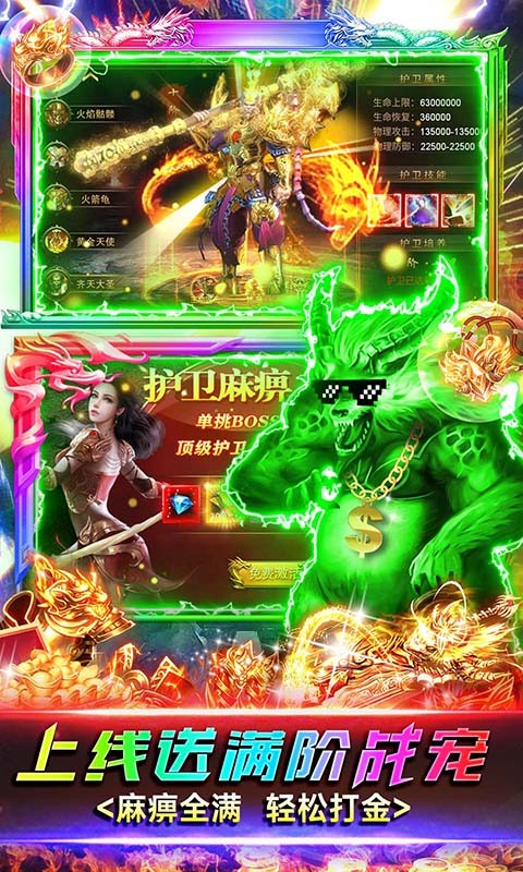 ★上线就送战宠满阶直升丹,还免费赠送100%麻痹特权,轻松挑战所有BOSS