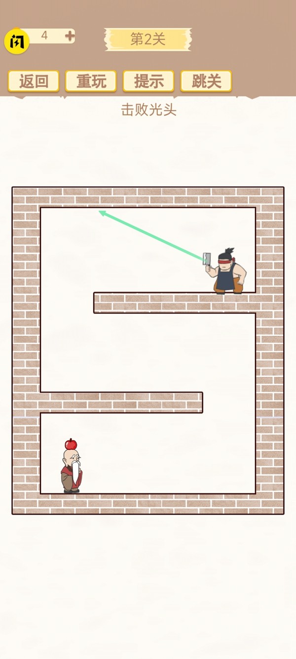2、是一款休闲益智游戏,玩家需要通过投掷飞刀,通过身体特征击中目标,达到过关条件。