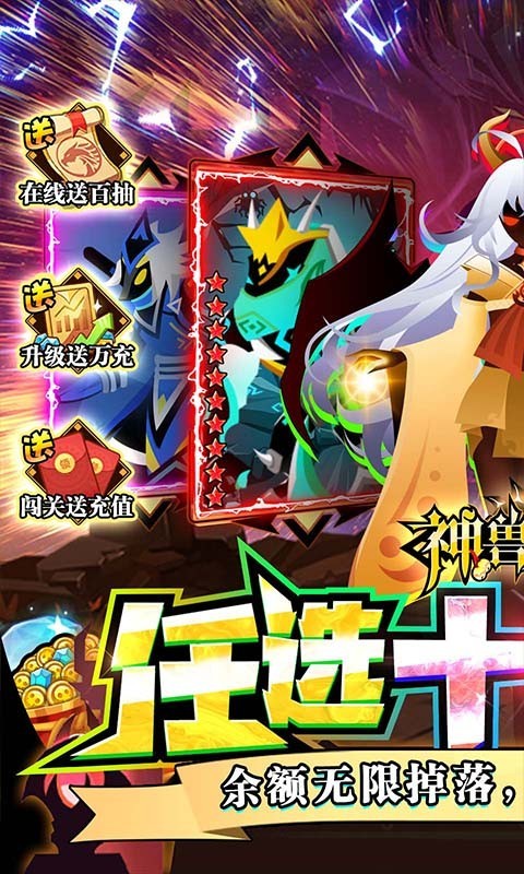 神兽连萌免充任选十星,重磅来袭的卡牌英雄角色出场了,玩家登录游戏送福利,免充特权让你0氪也能升满V,海量钻石、投资、礼包免费激活,升级再送万元真充,每个人的爆率都很高,任选其他是英雄来作战,神兽连萌游戏的阵容随意的选择、挑选出重要的角色战斗吧。