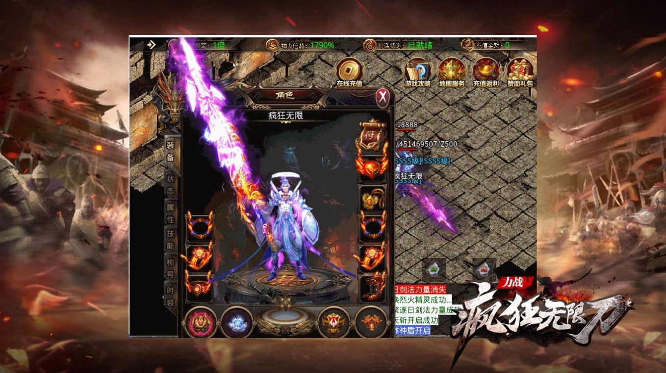 力战疯狂无限刀,一款玩法不错的热血传奇竞技战斗游戏。力战疯狂无限刀游戏内容丰富,武器道具超多,玩家可以邀请自己的朋友参与一系列的传奇战斗,这里的副本刷图可以让你获得更多的惊喜奖励哦,更多的刺激竞技带给你,来试试吧。