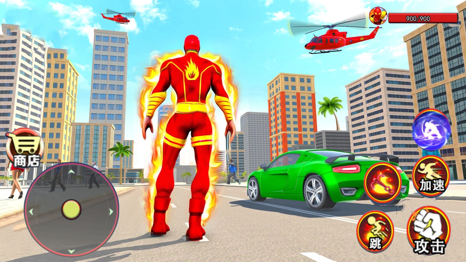 都市超级英雄战士的游戏。在这个城市里,你需要扮演一个超级火焰战士。你仍然有机会完成你的英雄冒险挑战。你也有很好的战斗方式来实现你的游戏目标,解锁你需要的各种冒险技能。你也有自己的实力成为最强战斗英雄。