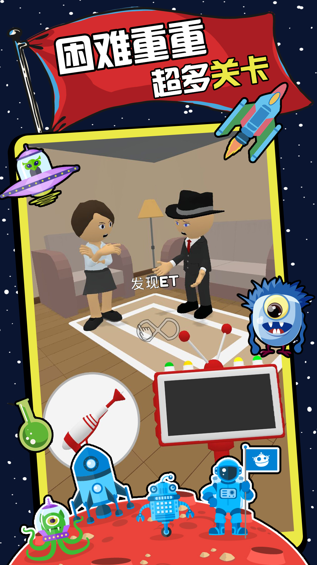 非常简单的建模,但是游戏的趣味确实无穷的。在人来人往的地方,可能就匿藏着外星人,一旦确认,立马消灭,不要给任何的机会,你将成为人类的大英雄。