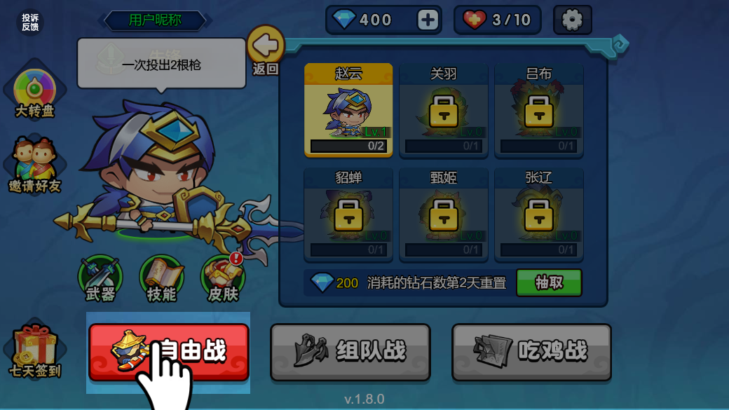 3.提升三国英雄的等级,让三国英雄快速的进行穿梭,完成自己的挑战任务