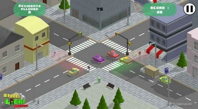 街道交通灯是一款休闲模拟游戏。你将扮演一个交通指挥员,操控十字路口的交通灯,指挥各种车辆前进。