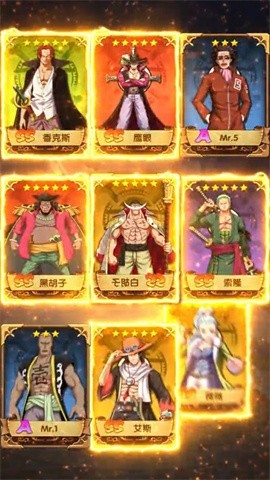 1.路飞+白胡子+马尔高+伊娃科夫+甚平,艾斯可以作为阵容的替补。阵容拥有最强的组合,大家可以试试。