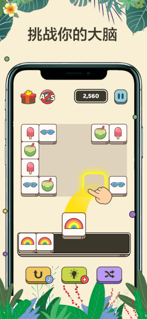 1、在每一关中找到三个相同的元素就可以成功消除,获得一定的分数;