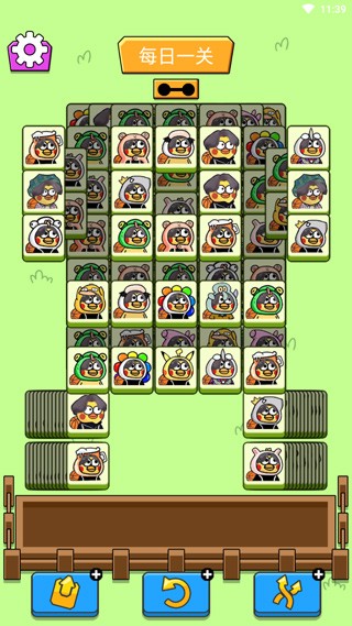 2、游戏采用三消玩法,共有两关,点击三个相同的方块到下方七格横框中即可成功消除;
