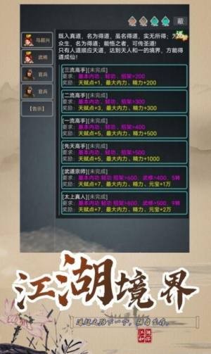武拟江湖游戏是一款文字题材江湖冒险题材手机游戏,在武拟江湖游戏内加入到我们的冒险,全新的武侠冒险对决,获取更多的招式,成为我们的掌门,简单易上手的游戏操作,招募更多的弟子,成为江湖中的大佬,在副本中自由进行历练,精彩的对决一触即发!