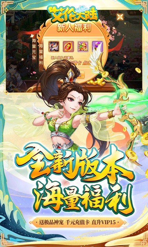 ★创建角色就送元宝充值卡豪华大礼包,极品属性神宠以及直升VIP15。
