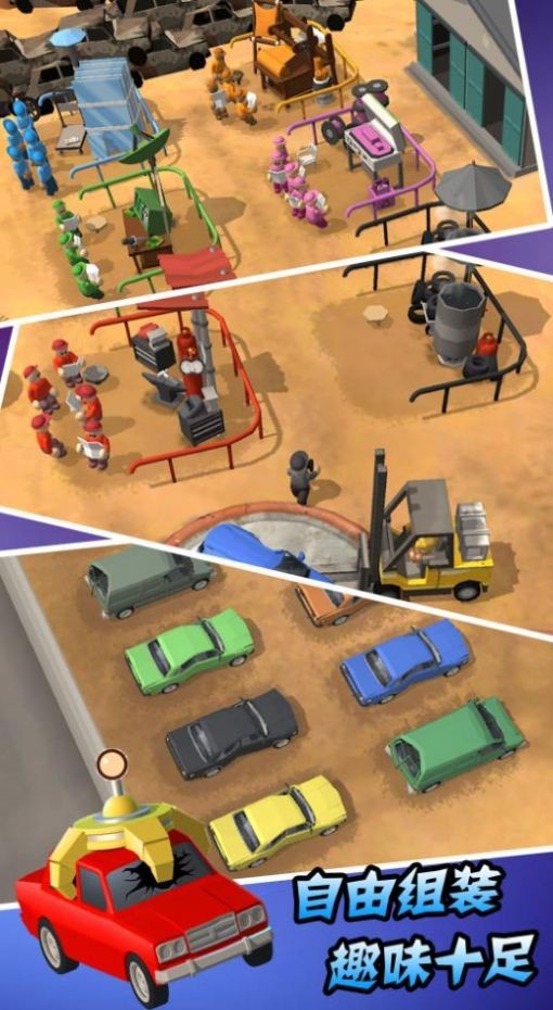 汽车厂模拟器是一款画风简单的轻松休闲类模拟经营小游戏。汽车厂模拟器中,玩家扮演汽车制造厂的小老板,拆卸旧车,制造新车,针对不同的车有不同的任务,你需要把它们通通办好!