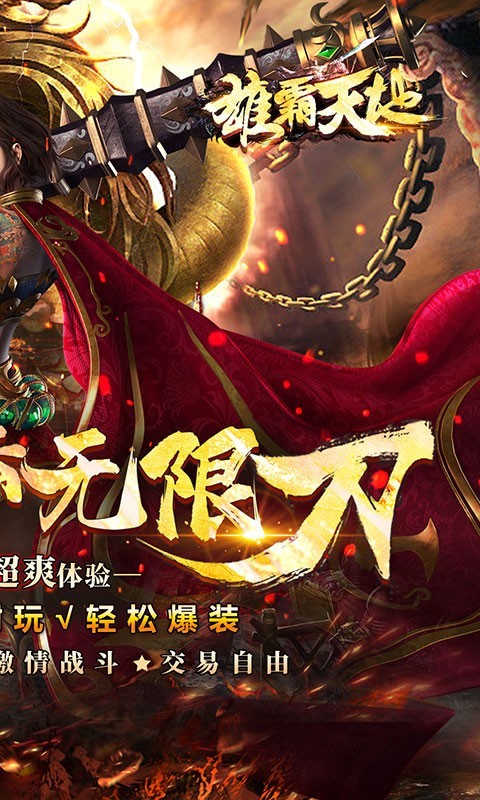 雄霸天地极速爽爆版,一款玩法不错的热血传奇竞技战斗游戏。雄霸天地极速爽爆版游戏中画面丰富,很多的副本竞技和挑战玩法融入了超多的武器道具和装备,玩家可以通过一系列的刷图得到稀有材料。加入帮派,淬炼新武器,提高战斗力。