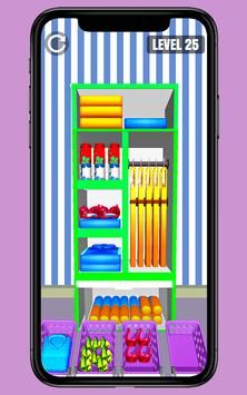 衣柜组织填充排序3D是一款趣味十足的收纳整理游戏。在衣柜组织填充排序3D中,整理你的衣物吧,把衣柜整理的井井有条、满满当当!当所有东西收拾好,排列整齐,看起来赏心悦目,快来利用收纳解压吧!