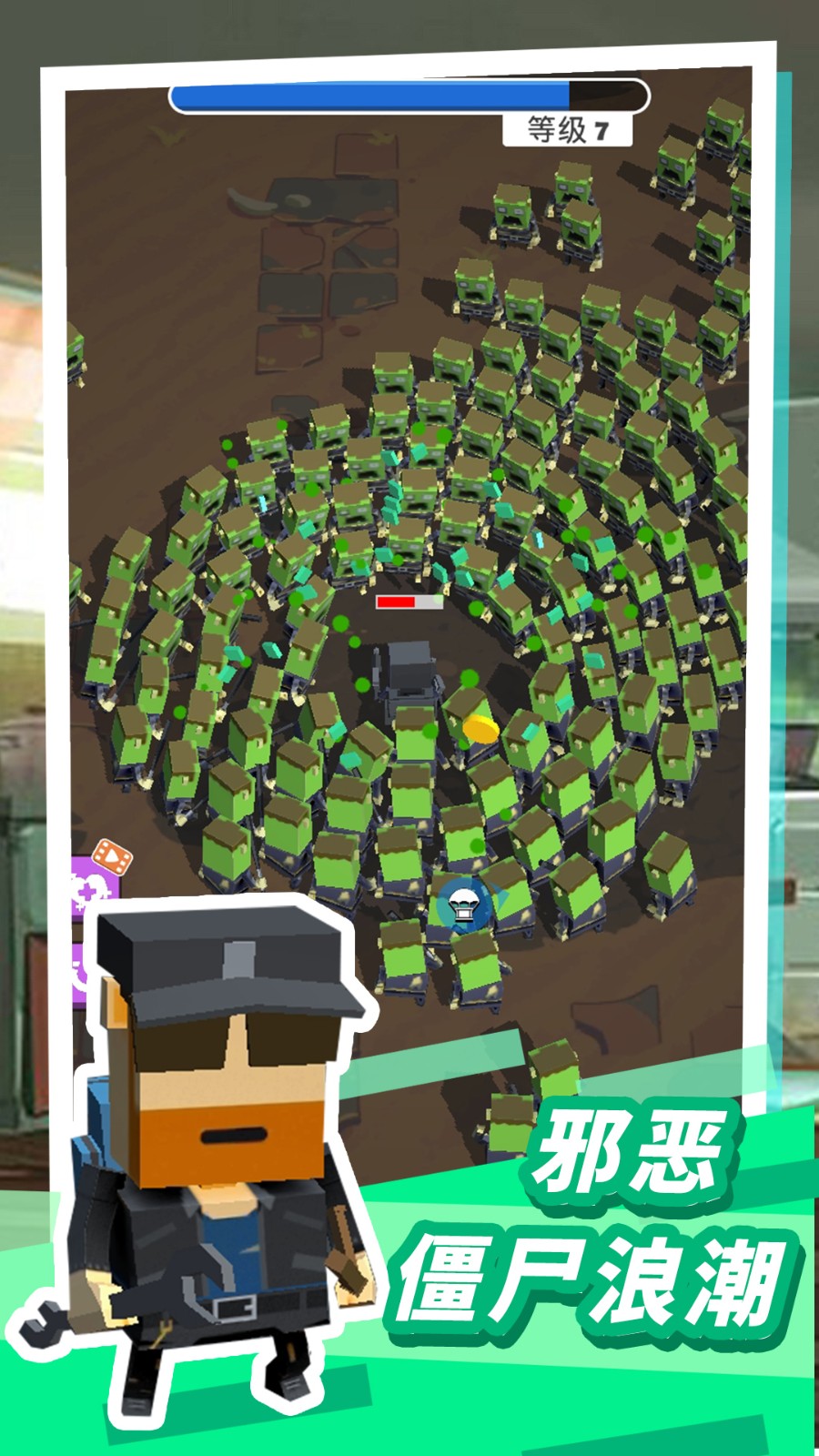 爆炸僵尸射击游戏。游戏风格卡通可爱的小僵尸等着你来收拾,升级你的武器和道具,疯狂射击更多的僵尸,完成一次又一次拯救世界的任务。
