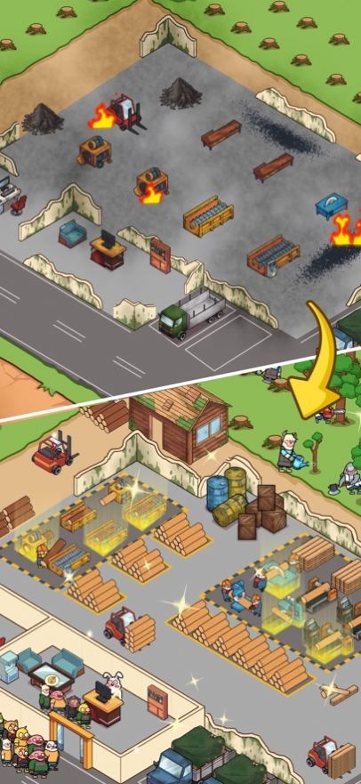奇思妙想来打造一个个不同的伐木工厂,做出最满意的判断,随时改变画风。更多的木材生意可以完美打造。