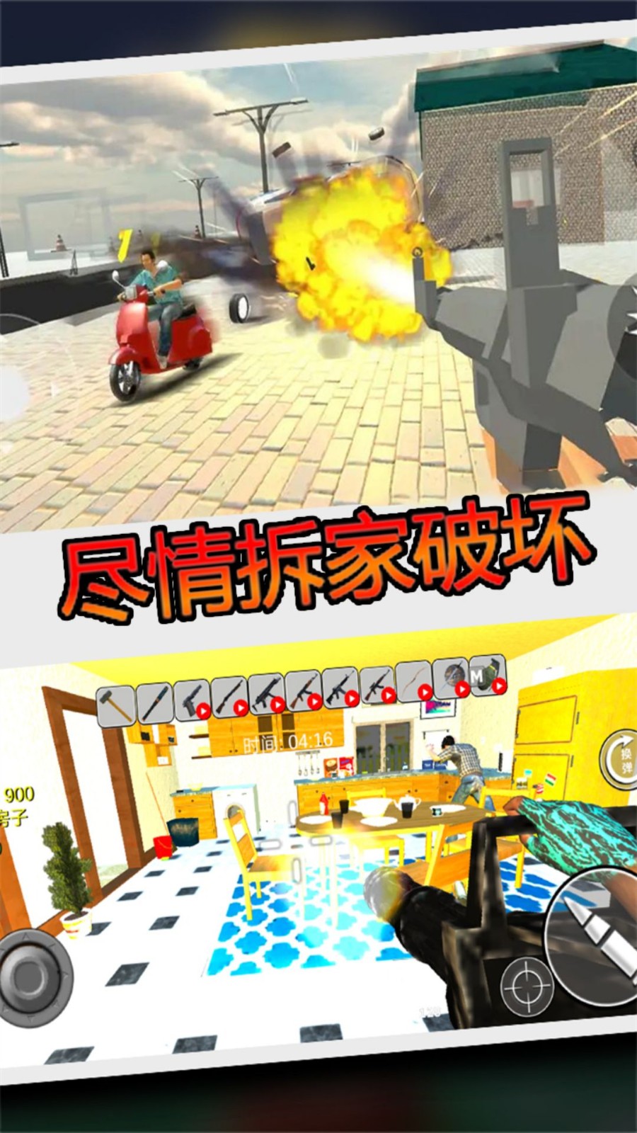 1.利用所有武器毁坏建筑,想怎么破坏都可以,全方位释放自己的情绪。