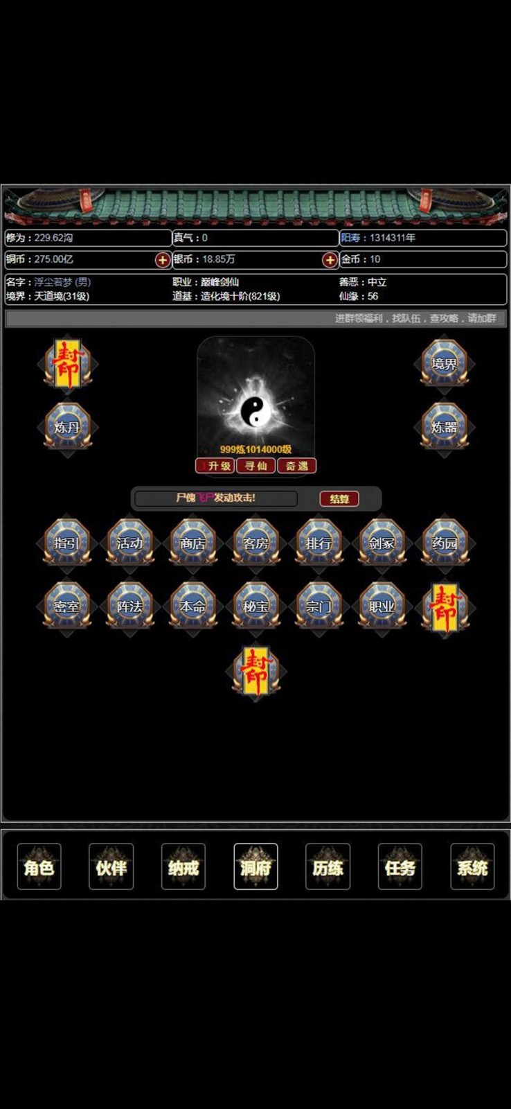 三界伏魔录证道,一款玩法不错的文字修真竞技冒险游戏。三界伏魔录证道游戏中玩家可以在这里开启一个全新的修真剧情,游戏属性丰富,自由增改,感受不一样的挑战。文字角色随意选择,大量的彩蛋随机触发,来完成自己的修真伏魔战斗吧。