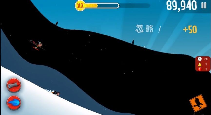 3.控制你的角色滑雪,不断穿越不同的雪原,风景都不一样,但需要安全到达。