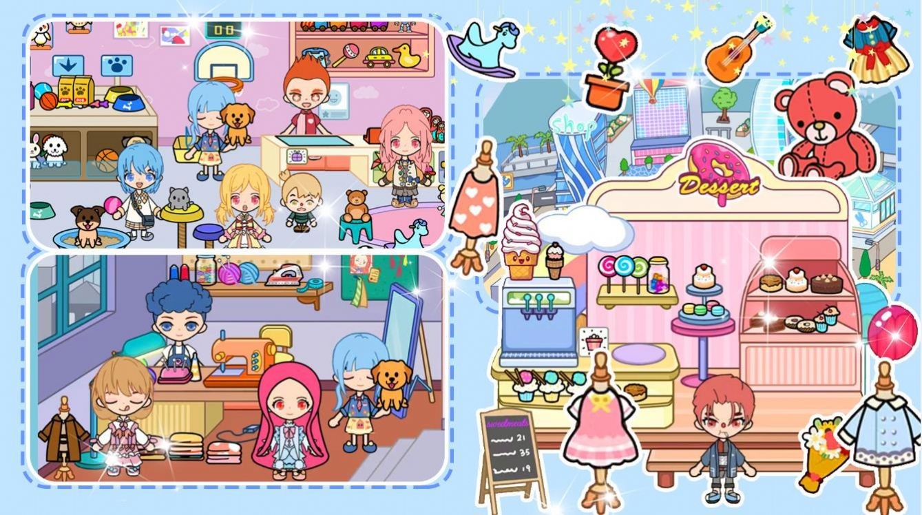 一款经典的小镇生活模拟休闲游戏,进入迷你小镇世界,体验甜心的美好都市生活。很多动漫角色可以随意挑选,角色可以搭配各种精致的服饰,成为学校里最抢眼的存在。可以自由扮演校花、校草、辣老师等角色。也可以亲自经营自己的咖啡店,很自由。