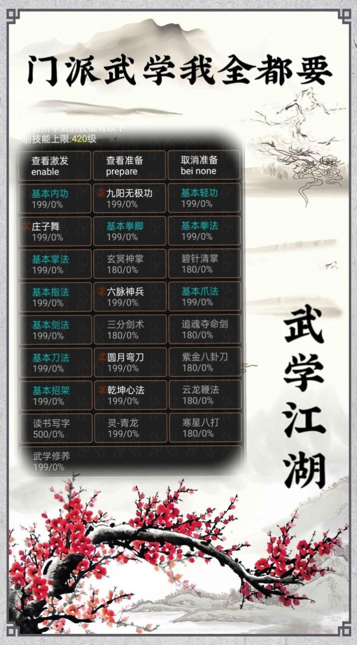 武学江湖,一款玩法不错的文字江湖冒险武侠游戏。武学江湖游戏内容丰富,超多的挑战等着你加入,通过不同的剧情奇遇来享受更多的冒险吧。游戏画面简单,玩法简单易上手,提升自己的能力,成为真正的强者。在这里进行无休止的探索。