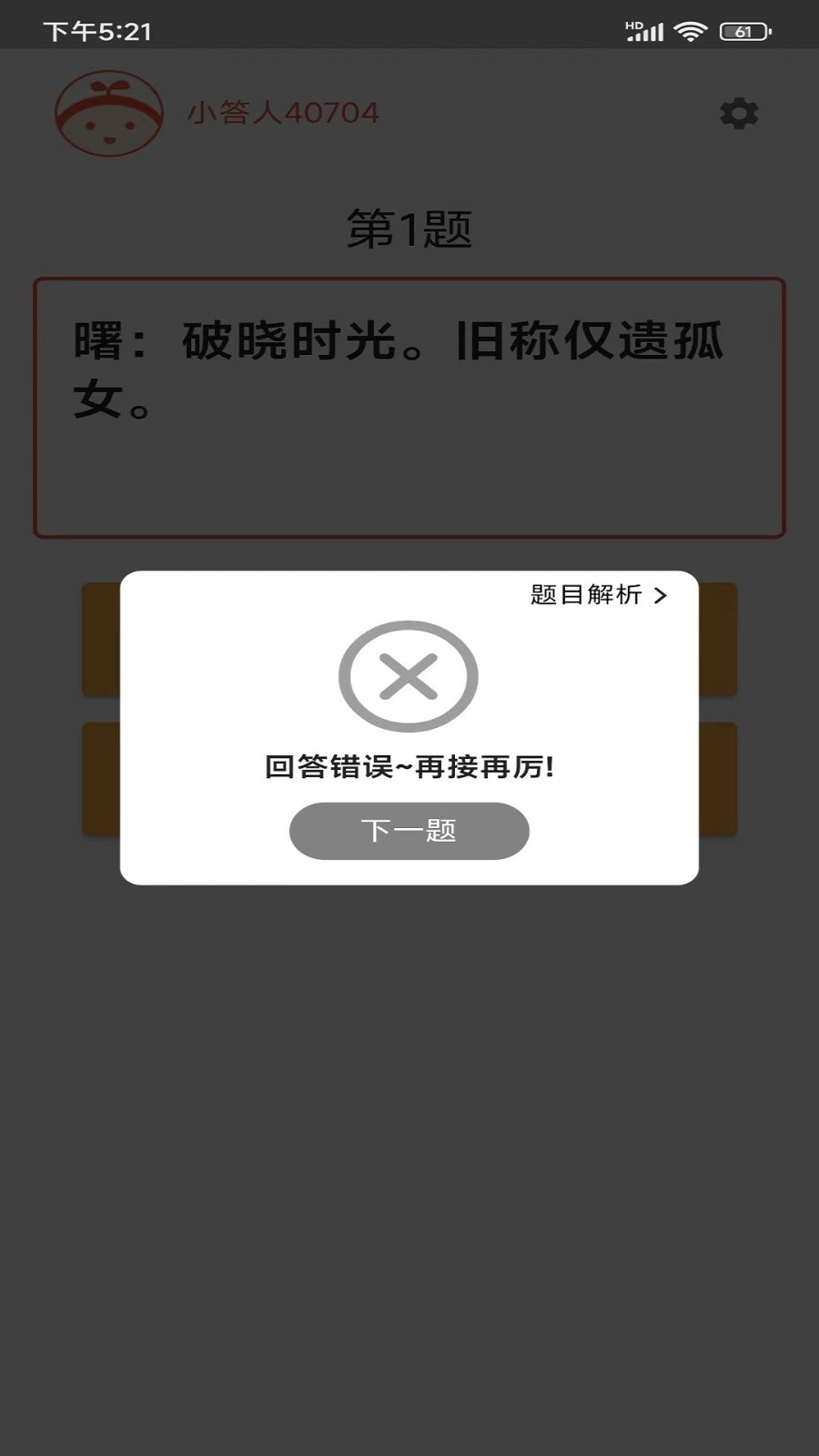 3.海量成语被当做题目,题库随机出题,可以实时感受到游戏的快乐。