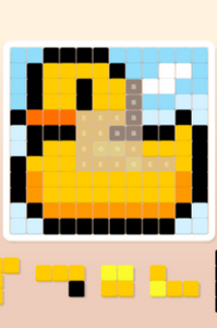 1.将像素小方块按照你的想法填充到画作中,让画作恢复成原来的样子吧!