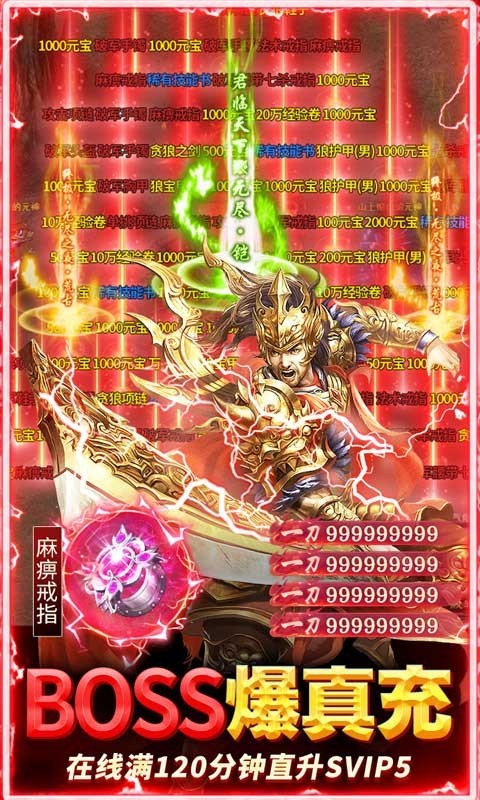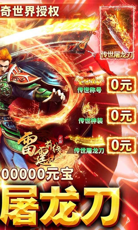 雷霆前线送传世屠龙刀,登录游戏送时装、屠龙刀,雷霆前线手游是一款上线领2百万元宝的福利传奇游戏,击杀不同的boss,在线满120分钟直升SVIP5,开局享受0元购,在线送648元充值,每一刀都可以暴击,麻痹戒指、屠龙宝刀都可以得到。