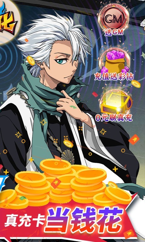 1.创角即赠GM0,红卡黑崎一护*1,刀灵石斩月*1,金币*10w